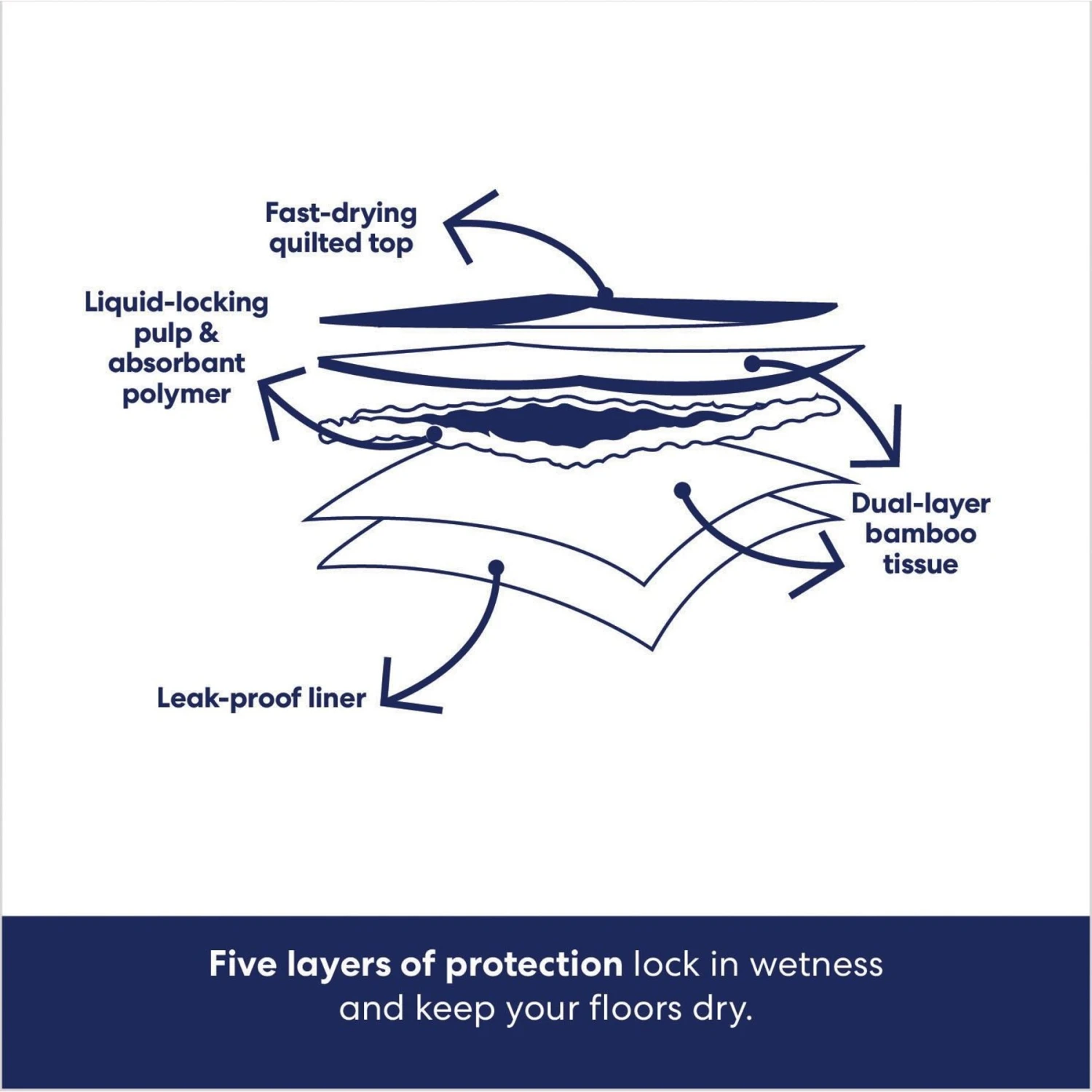 - Leak-proof and absorbent with built-in dog attractant to encourage puppies and adult dogs to do their potty duty in the right spot, while the leak-proof lining keeps floors clean.