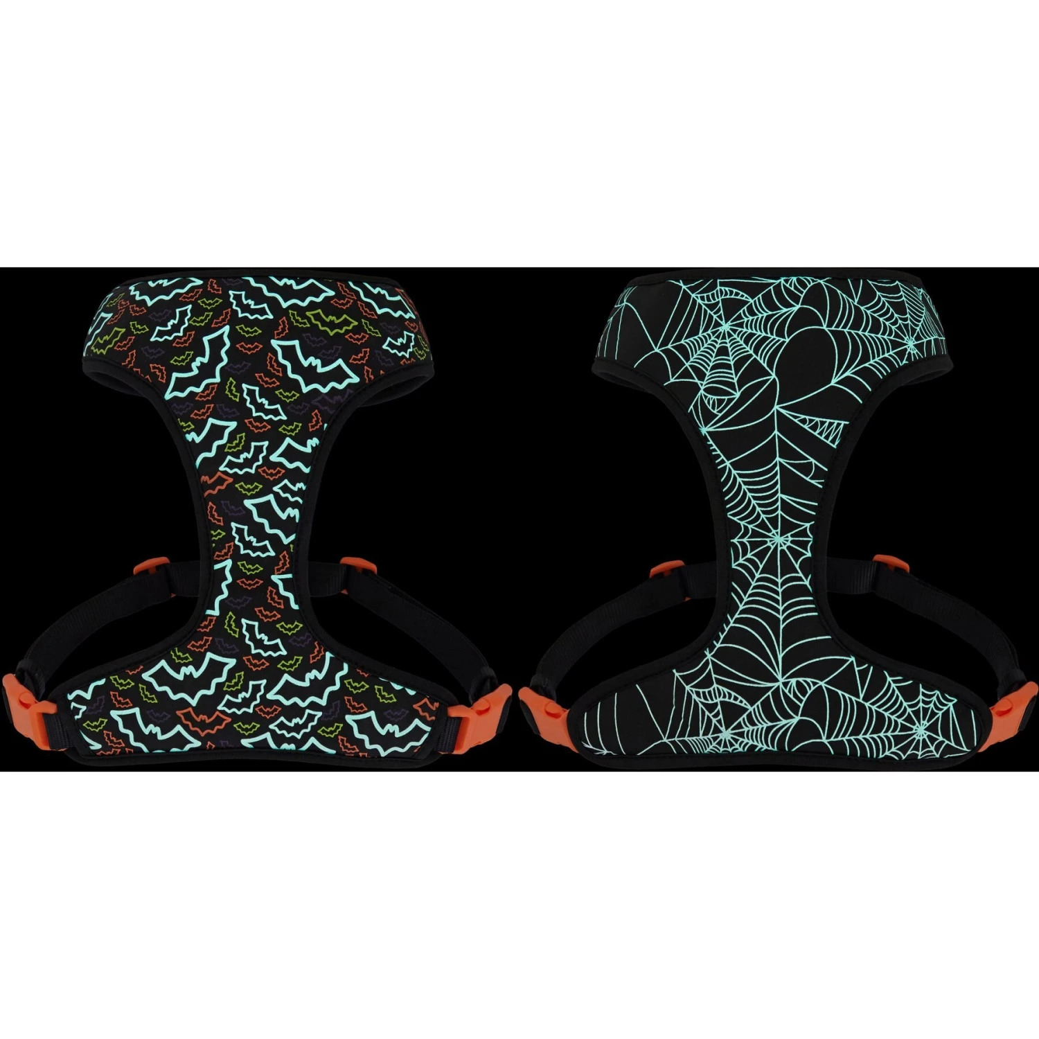 - Glow-in-the-dark reversible harness features bats on one side and spiderwebs on the other—from Frisco, by the pet experts at Chewy.