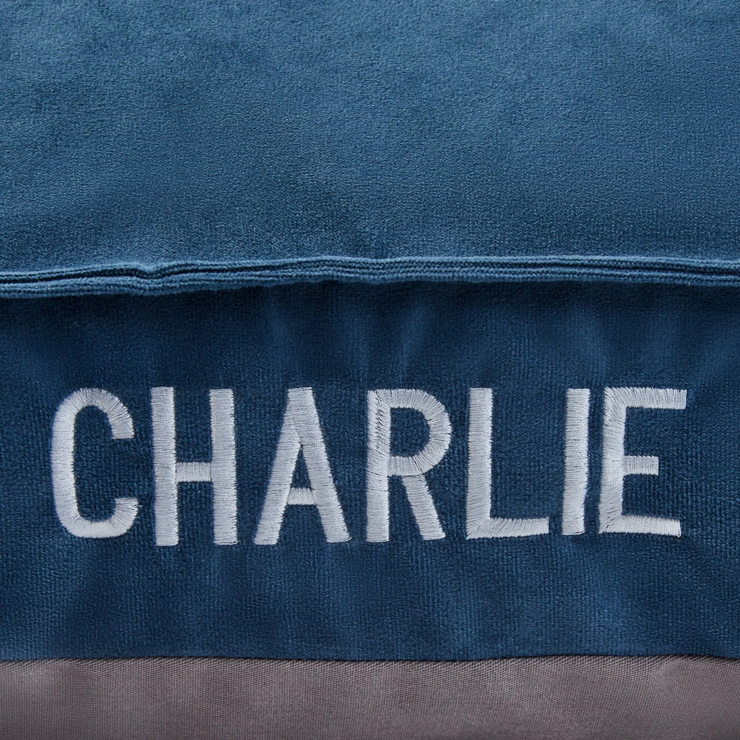 - Back bolster-style bed, customizable with up to 10 1-inch characters, perfect for their name.